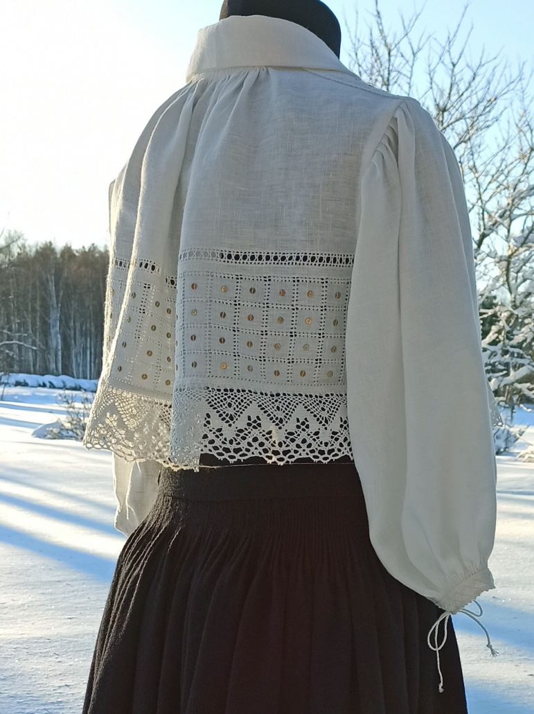 • Kuna originaalsed kaenlalapiga varrukad ei istunud hästi, tegin käeaugukaare kaasaegse särgi lõike järgi.